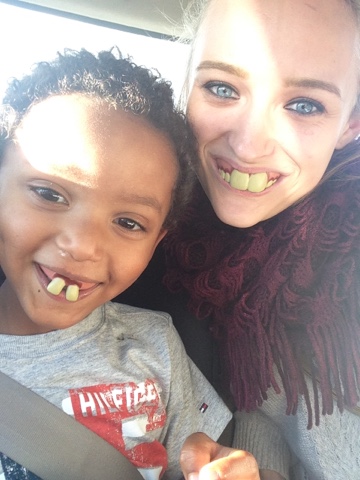 Kenzie got home and picked the tomatoes and kale with Isaac. Then they went down and picked up Peyton from Grammys. They dropped her off and then Kenzie took Isaac on a special date to Culvers and to the dollar store. Then she took Isaac to a babysitting job with her. She sent me these pics. Katie's new puppy and her and Isaac with the teeth they got.