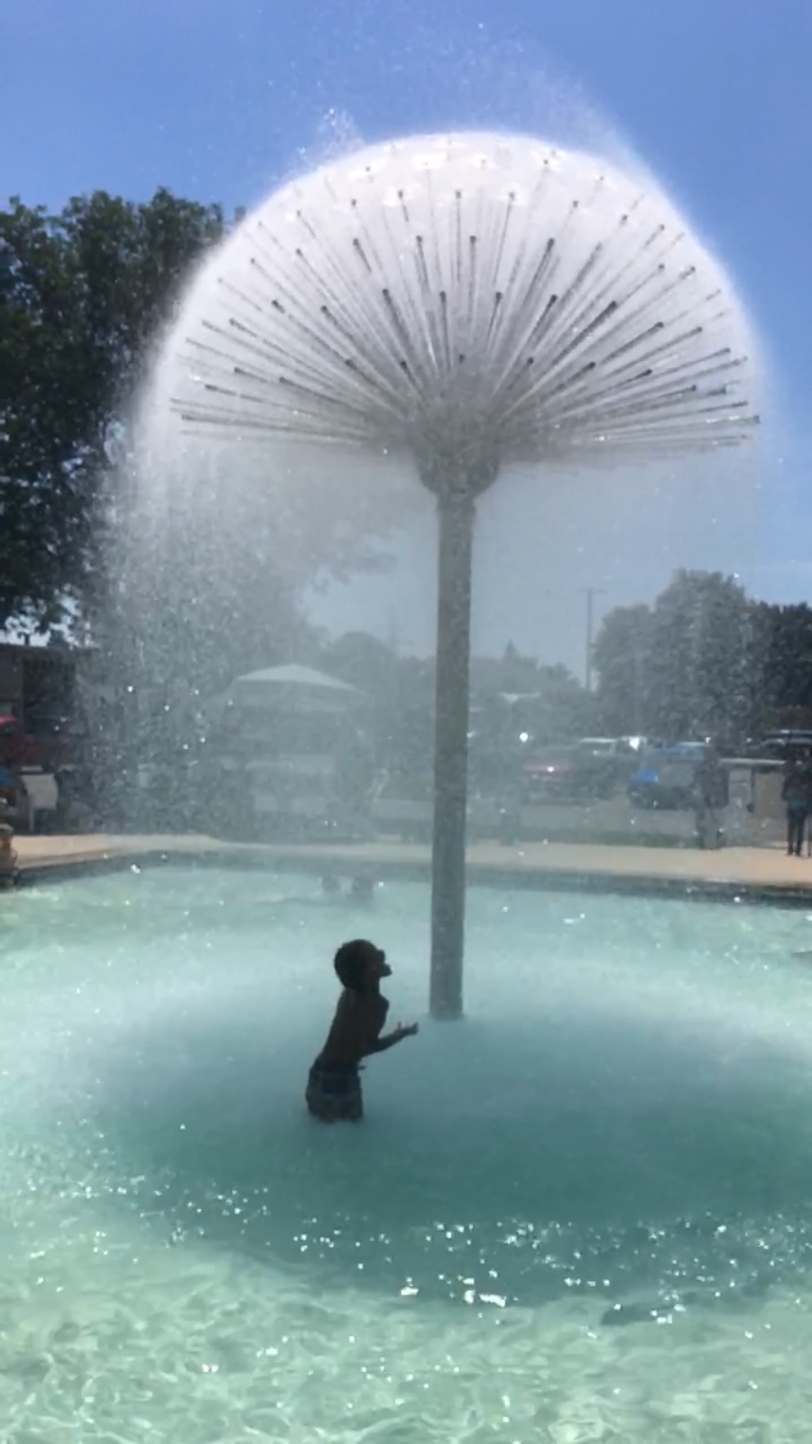 Today I took the kids to the spray pool, they loved the sprinkler this time! Last year they were scared of it.